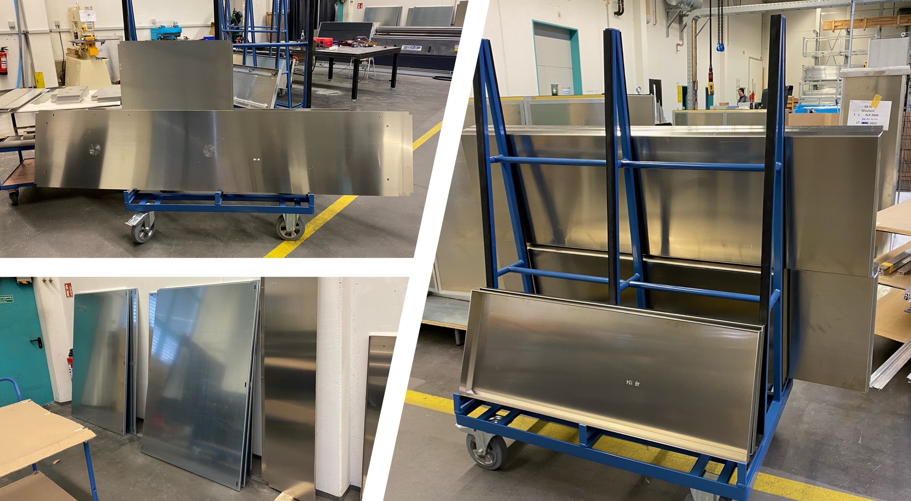 In der Fertigung unseres Kunden, der Firma Rapp Schaltschränke GmbH, wird mit größeren Blechplatten zur Bearbeitung und Montage hantiert. Diese Rohplatten müssen also verschiedene Stationen durchlaufen.