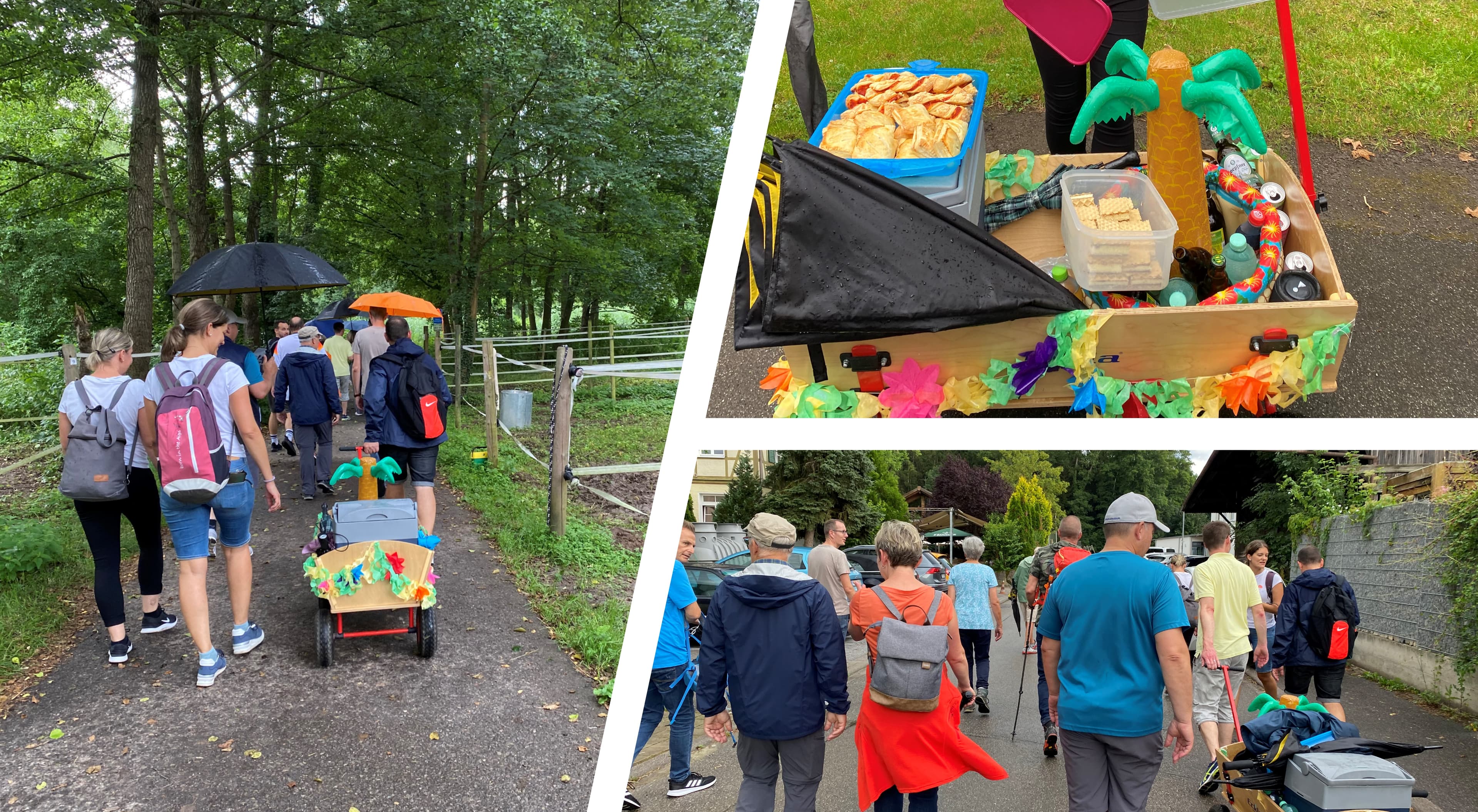 Ausgestattet mit Regenjacken und Schirmen starteten wir am Freitagnachmittag zu unserer rund zweistündigen Wanderung. Die Strecke führte durch malerische Landschaften und bot zahlreiche Gelegenheiten, die Natur zu genießen und interessante Gespräche zu führen. Unterwegs sorgten bereitgestellte Getränke dafür, dass wir gut versorgt waren.